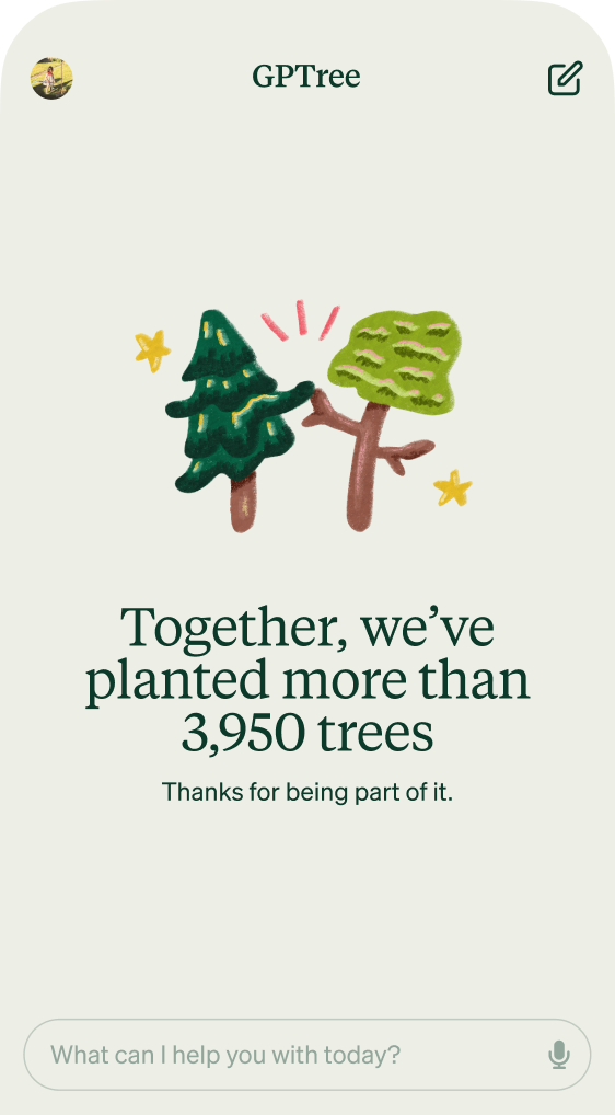 Through verified tree-planting, ChatGPTree is turning everyday AI use into real climate action with our web-based chatbot, mobile app, and our individual AI carbon offset program. Keep reading to see how real impact is within reach.
